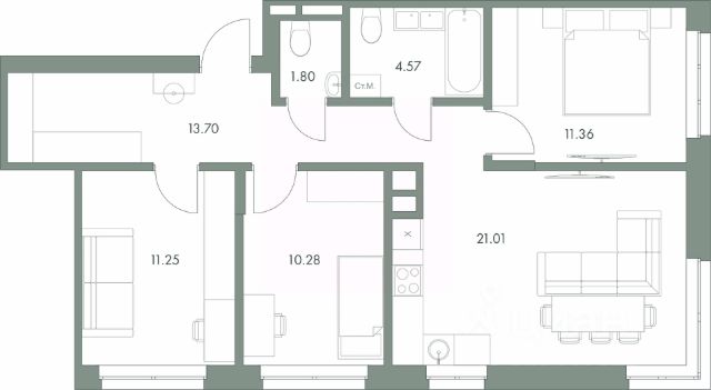 • ✅ Объект наибольшей площади: 56,9 м²