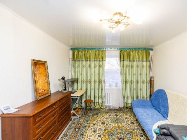 Квартира с косметическим ремонтом: потолки - побелка. Входная дверь металлическая. Двери в квартире деревянные: дверь в большую комнату двустворчатая с прозрачным стеклом, дверь в кухню с прозрачным стеклом. Окна выходят во двор (север), на улицу Островского (юг), деревянные с двойными рамами в средней и маленькой комнатах, евроокна из дерева в большой комнате и на кухне, включая балконную дверь. Выход на балкон из кухни. Балкон не утеплен, обшит деревом. Пол на кухне в сильные морозы может быть немного прохладным. Балкон осмотрен сотрудниками УК. Дефектов со стороны фасада дома ими не выявлено. Вопрос решается утеплением балкона. Материал пола в комнатах: ламинат, на кухне: кварцвинил, в санузле и ванной: плитка. Кладовая комната была изначально, стены выполнены из ДСП. После косметического ремонта демонтирована, за счёт этого на 1.5м увеличена площадь средней комнаты. В ванной комнате поддон с душем, раковина с тумбой, имеются отдельные смесители над душевой и раковиной. Туалет отдельный. Кухня отдельная. Варочная поверхность электрическая. Интернет-коммуникации подведены. Мебель, бытовая техника остаются по договоренности. На лестничной площадке расположены 3 квартиры. Мусоропровод расположен на лестничной площадке между этажами. На первом этаже кладовой для хранения вещей общего пользования нет, но есть просторный холл, где можно оставить коляску, санки, велосипед. Домофон в рабочем состоянии. В подъезде 3 года назад выполнены покраска стен в нежно-зелёный цвет и побелка потолков. Подъезды в чистоте и порядке. Лифта нет. Соседи доброжелательные, семейные возрастные пары без детей. Шумные, асоциальные люди с неуравновешенной психикой в подъезде не проживают. Во дворе одна детская площадка. Много парковочных мест. Шлагбаум присутствует, в настоящее время сломан.