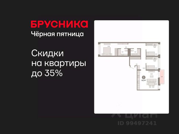 • ✅ Минимальная площадь: 34,8 м²