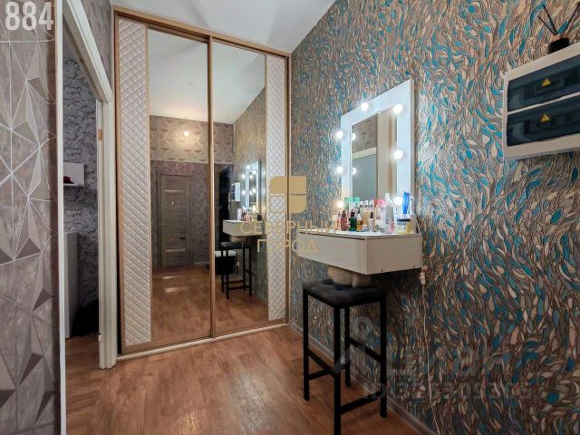 Ремонт выполнен из дорогих, качественных материалов: на полу постелен немецкий ламинат, в санузлах установлена немецкая сантехника Grohe, столешницы барных стоек выполнены из искусственного камня, теплый пол уложен в гостиной и спальне, в гостиной установлена сплит-система Ballu с Wi-Fi модулем, в коридоре большой шкаф-купе Komandor.