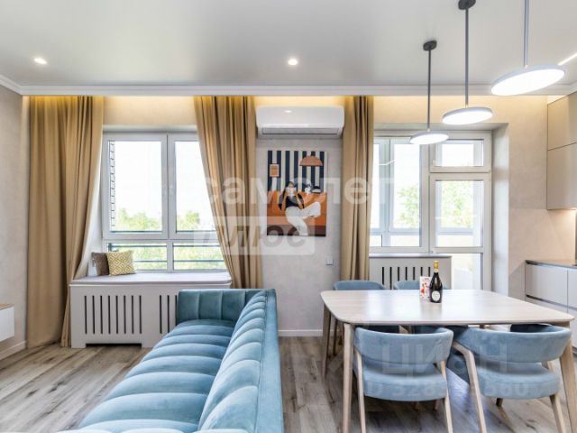 • Продуманный интерьер: натяжные потолки по всей квартире, шторы- сшитые на заказ именно под этот проект.