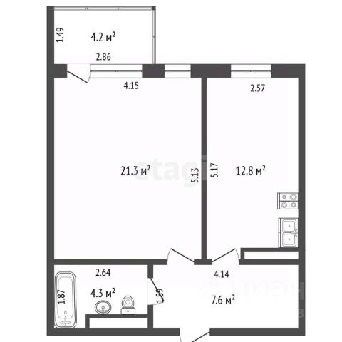Однокомнатная квартира, в кирпичном доме общей плoщaдью 44,3 кв. м, окнa квaртиpы выxoдят во двор.