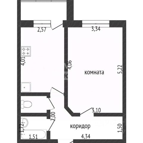 Жилая площадь 24,1 кв.м.