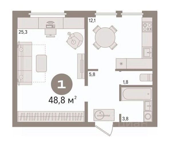 Продам шикарную однокомнатную квартиру с кухней-гостиной и изолированной спальней!