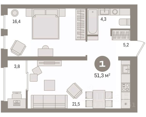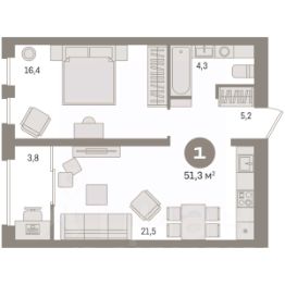 Продается 1-комн. квартира с предчистовой отделкой в ЖК "Новин" на 7 этаже. Общая площадь: 51.26 кв.м., жилая: 16.3 кв.м., площадь просторной кухни-гостиной: 23 кв.м. Все окна выходят на одну сторону. В квартире одна лоджия, один совмещенный санузел. Высота потолков 2.7 м. Дом монолитный, многоподъездный, переменной этажности, от 8 до 17 этажей. Квартира находится во 2-й секции высотой 9 этажей в корпусе 7. На этаже 7 квартир. В подъезде 1 пассажирский и 1 грузовой лифт. Окончание строительства - 2 квартал 2027 года. Оформление сделки по договору долевого участия. Квартира с кухней-гостиной и одной спальней в квартале "Новин". Особенности планировки: лоджия, предчистовая отделка. квартиры в нашей базе: НСВ07-Ж2.7.3. Квартал "Новин" расположен на западе Сургута в районе с хорошо развитой инфраструктурой. Рядом — парк "Кедровый Лог", детские сады, поликлиника, продуктовые магазины и торговые центры. До центра города — 20 минут на автомобиле. Пять домов уже заселены. Ещё три находятся на этапе возведения. Квартал находится в западной части Сургута на пересечении Югорского тракта и улицы Игоря Киртбая. Можно быстро добраться до любой точки города по Югорскому тракту. В районе уже сформированная инфраструктура. Рядом расположены крупные торговые центры, три детских сада, поликлиника, парк и спортивная база. На первых этажах квартала спроектированы коммерческие помещения под повседневные сервисы для жителей: магазины, кафе, аптеки и другие полезные функции. Проектом развития территории предусмотрено строительство детского сада и общеобразовательной школы. Во дворах предусмотрены сценарии для разных категорий жителей, в том числе и площадки для тихого отдыха с фонтаном и арт объектом. Детская площадка раскрывает игровой потенциал территории за счёт разных возможных типов взаимодействий, среди которых присутствуют: контакт с природой, смена уровня игры и контролируемый риск, сотрудничество и игра в команде, а также спокойный сценарий с качелями. Между домами второй очереди мы спроектировали общественное пространство. Здесь также расположатся спортивные и игровые площадки, велопарковки и площадь событий. Главной точкой притяжения станет фонтан. #ztlISc