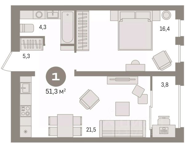 Продается 1-комн. квартира с предчистовой отделкой в ЖК "Новин" на 7 этаже. Общая площадь: 51.26 кв.м., жилая: 16.3 кв.м., площадь просторной кухни-гостиной: 23 кв.м. Все окна выходят на одну сторону. В квартире одна лоджия, один совмещенный санузел. Высота потолков 2.7 м. Дом монолитный, многоподъездный, переменной этажности, от 8 до 17 этажей. Квартира находится во 2-й секции высотой 9 этажей в корпусе 7. На этаже 7 квартир. В подъезде 1 пассажирский и 1 грузовой лифт. Окончание строительства - 2 квартал 2027 года. Оформление сделки по договору долевого участия. Квартира с кухней-гостиной и одной спальней в квартале "Новин". Особенности планировки: лоджия, предчистовая отделка. квартиры в нашей базе: НСВ07-Ж2.7.3. Квартал "Новин" расположен на западе Сургута в районе с хорошо развитой инфраструктурой. Рядом — парк "Кедровый Лог", детские сады, поликлиника, продуктовые магазины и торговые центры. До центра города — 20 минут на автомобиле. Пять домов уже заселены. Ещё три находятся на этапе возведения. Квартал находится в западной части Сургута на пересечении Югорского тракта и улицы Игоря Киртбая. Можно быстро добраться до любой точки города по Югорскому тракту. В районе уже сформированная инфраструктура. Рядом расположены крупные торговые центры, три детских сада, поликлиника, парк и спортивная база. На первых этажах квартала спроектированы коммерческие помещения под повседневные сервисы для жителей: магазины, кафе, аптеки и другие полезные функции. Проектом развития территории предусмотрено строительство детского сада и общеобразовательной школы. Во дворах предусмотрены сценарии для разных категорий жителей, в том числе и площадки для тихого отдыха с фонтаном и арт объектом. Детская площадка раскрывает игровой потенциал территории за счёт разных возможных типов взаимодействий, среди которых присутствуют: контакт с природой, смена уровня игры и контролируемый риск, сотрудничество и игра в команде, а также спокойный сценарий с качелями. Между домами второй очереди мы спроектировали общественное пространство. Здесь также расположатся спортивные и игровые площадки, велопарковки и площадь событий. Главной точкой притяжения станет фонтан. #ztlISc
