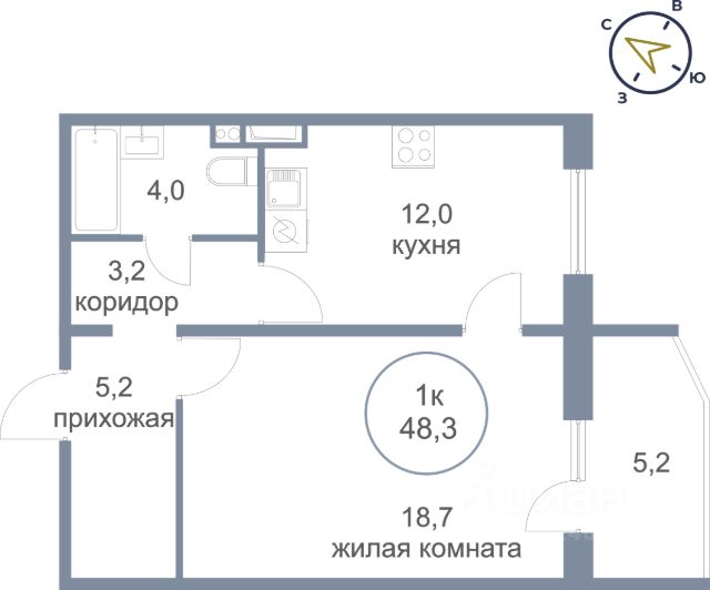 Продаётся 1-комнатная квартира в сданном доме (Молодёжная, 6А), срок сдачи: IV-кв. 2025, общей площадью 48.3 кв.м., на 4 этаже. Новый жилой комплекс "Молодежный" от застройщика "Сибпромстрой" расположен по адресу: Ханты-Мансийский автономный округ, посёлок Солнечный, Молодёжная улица.