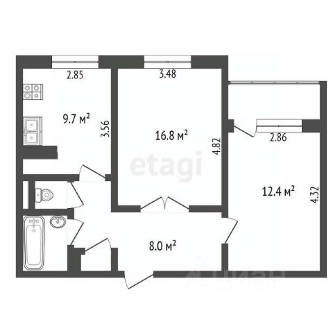 • ✅ Объект наибольшей площади: 52,8 м²