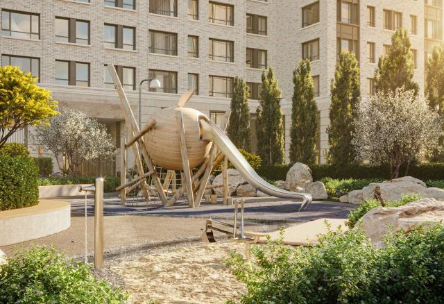 Детская площадка раскрывает игровой потенциал территории за счёт разных возможных типов взаимодействий, среди которых присутствуют: контакт с природой, смена уровня игры и контролируемый риск, сотрудничество и игра в команде, а также спокойный сценарий с качелями.