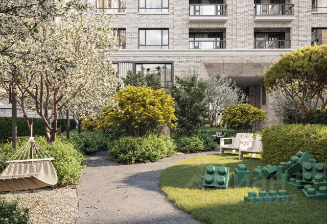 Во дворах предусмотрены сценарии для разных категорий жителей, в том числе и площадки для тихого отдыха с фонтаном и арт объектом.