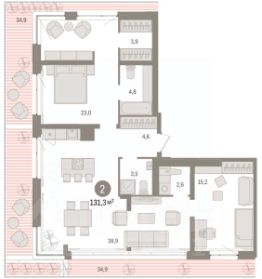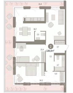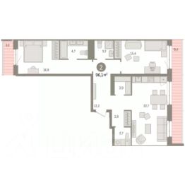 Просторная 2-комн. квартира с предчистовой отделкой в ЖК "Новин" на 6 этаже. Общая площадь: 96.11 кв.м., жилая: 32.3 кв.м., площадь просторной кухни-гостиной: 22.7 кв.м. Квартира - распашонка, без проходных комнат, окна выходят на paзные стороны дома. В квартире два балкона, два совмещенных санузла. Наличие в квартире террасы размером 9.4 кв.м. дает возможность для обустройства дополнительной площади. Высота потолков 2.74 м.