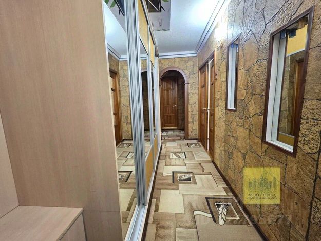 На кухне установлен новый кухонный гарнитур, посудомойка, и стиральная машина. Встроенная плита и духовой шкаф. Новый кухонный стол, стулья. В коридоре установлен гардероб с раздвижными дверями.