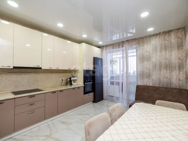 Выполнен дорогостоящий ремонт: тёплые полы, натяжные потолки, утеплённый балкон. Раздельный санузел, в туалете подвесной унитаз и подвесная тумба с раковиной, в туалете и в ванной плитка, пол в прихожей полностью выложен плиткой, в остальных комнатах - ламинат. Остаётся огромный встроенный шкаф в прихожей, встроенная кухня.