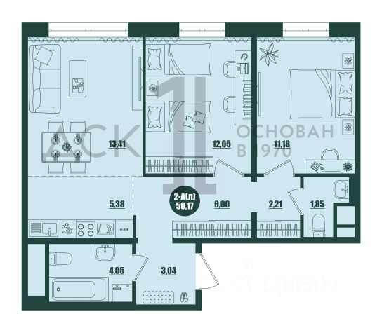 Продаётся 2-комнатная квартира в строящемся доме (Дом 4.3), срок сдачи: II-кв. 2026, общей площадью 59.17 кв.м., на 2 этаже. Новый жилой комплекс "Крылов" от застройщика "ДСК-1" расположен по адресу: г. Сургут, улица Крылова.
