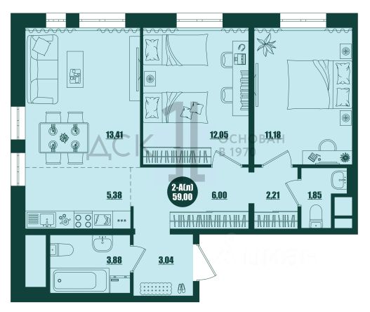 Продаётся 2-комнатная квартира в строящемся доме (Дом 1.1), срок сдачи: IV-кв. 2025, общей площадью 58.82 кв.м., на 14 этаже. Новый жилой комплекс "Крылов" от застройщика "ДСК-1" расположен по адресу: г. Сургут, улица Крылова.