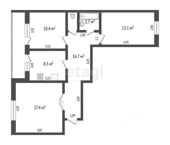 туалет 1,9 м2;