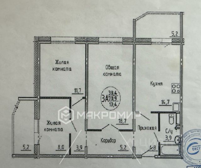 Просторная, светлая квартира с хорошим косметическим ремонтом, площадью 59,9 кв.м., кухня 8 кв.м., две лоджии по 5,2 кв.м. каждая