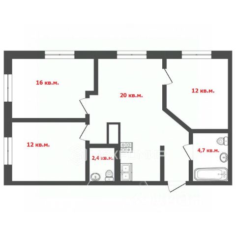 Блочный дом. Общая площадь 51,5 кв.м., жилая площадь 30,3 кв.м., кухня 7,3 кв.м.