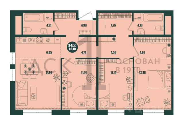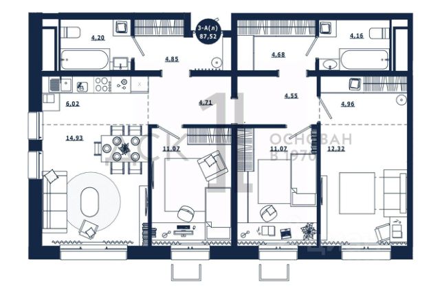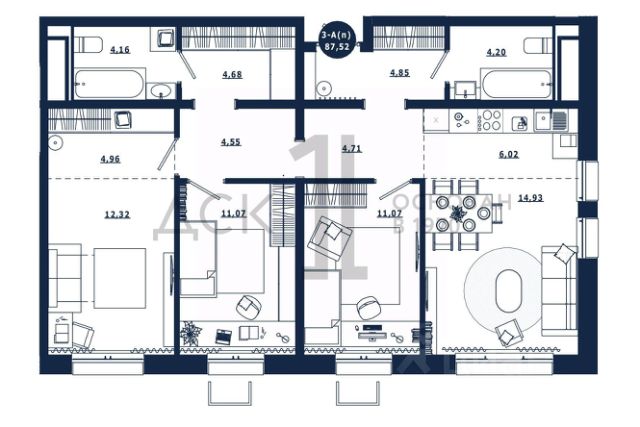Продаётся 3-комнатная квартира в строящемся доме (Дом 1 корпус 1,2,3), срок сдачи: IV-кв. 2025, общей площадью 87.52 кв.м., на 10 этаже. Новый жилой комплекс "Крылов" от застройщика "ДСК-1" расположен по адресу: г. Сургут, улица Крылова.