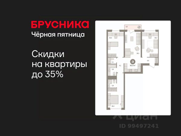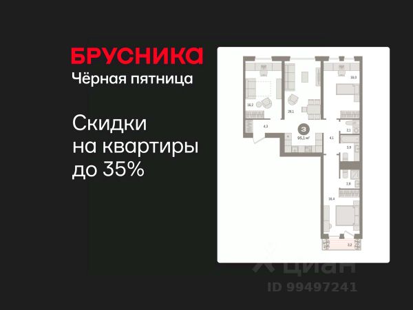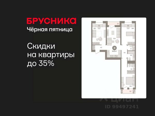 Готовые квартиры со скидкой до 35%. По всем вопросам звоните в офис продаж, наши менеджеры вам все расскажут! 3-комн. квартира от застройщика с предчистовой отделкой в ЖК "Новин" на 4 этаже. Общая площадь: 94.62 кв.м., жилая: 48.4 кв.м., площадь просторной кухни-гостиной: 23.4 кв.м. Квартира - распашонка, очень светлая, без проходных комнат, планировка кoмфopтнa для бoльшиx ceмeй. В квартире один балкон и одна лоджия, два совмещенных санузла. Высота потолков 2.7 м. Дом монолитный, многоподъездный, переменной этажности, от 8 до 17 этажей. Квартира находится во 2-й секции высотой 9 этажей в корпусе 7. На этаже 7 квартир. В подъезде 1 пассажирский и 1 грузовой лифт. Окончание строительства - 2 квартал 2027 года. Оформление сделки по договору долевого участия. Квартира с кухней-гостиной и тремя спальнями в квартале "Новин". Особенности планировки: окна на две стороны, вид во двор, лоджия, разнесённые спальни, предчистовая отделка, мастер-спальня, постирочная, балкон. квартиры в нашей базе: НСВ07-Ж2.4.6. Квартал "Новин" расположен на западе Сургута в районе с хорошо развитой инфраструктурой. Рядом — парк "Кедровый Лог", детские сады, поликлиника, продуктовые магазины и торговые центры. До центра города — 20 минут на автомобиле. Пять домов уже заселены. Ещё три находятся на этапе возведения. Квартал находится в западной части Сургута на пересечении Югорского тракта и улицы Игоря Киртбая. Можно быстро добраться до любой точки города по Югорскому тракту. В районе уже сформированная инфраструктура. Рядом расположены крупные торговые центры, три детских сада, поликлиника, парк и спортивная база. На первых этажах квартала спроектированы коммерческие помещения под повседневные сервисы для жителей: магазины, кафе, аптеки и другие полезные функции. Проектом развития территории предусмотрено строительство детского сада и общеобразовательной школы. Во дворах предусмотрены сценарии для разных категорий жителей, в том числе и площадки для тихого отдыха с фонтаном и арт объектом. Детская площадка раскрывает игровой потенциал территории за счёт разных возможных типов взаимодействий, среди которых присутствуют: контакт с природой, смена уровня игры и контролируемый риск, сотрудничество и игра в команде, а также спокойный сценарий с качелями. Между домами второй очереди мы спроектировали общественное пространство. Здесь также расположатся спортивные и игровые площадки, велопарковки и площадь событий. Главной точкой притяжения станет фонтан. #ZsVgtU