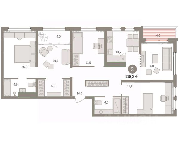 Просторная четырехкомнатная квартира с предчистовой отделкой в ЖК "Новин" на 1 этаже. Двухуровневая квартира, на каждом этаже вы можете выделить различные функциональные зоны. Общая площадь: 182.97 кв.м., жилая: 49.7 кв.м., площадь просторной кухни-гостиной: 27.5 кв.м. Угловая квартира, идеально подойдет любителям тишины и панорамных видов. В квартире один балкон, два совмещенных и один раздельный санузел. Наличие в квартире террасы площадью 21.9 кв.м. открывает возможность для создания зон отдыха в кругу семьи и друзей. Высота потолков 2.74 м. Дом монолитный, многоподъездный, переменной этажности, от 8 до 17 этажей. Квартира находится в 7-й секции высотой 17 этажей в корпусе 8. На этаже 6 квартир. В подъезде 2 пассажирских и 1 грузовой лифт. В настоящее время строительство окончено, дом сдан в 1 квартале 2024 года. Оформление сделки по договору купли-продажи. Двухуровневая квартира с кухней-гостиной и четырьмя спальнями в квартале "Новин". Особенности планировки: второй санузел, гардеробная, двухуровневая, постирочная, предчистовая отделка, терраса. квартиры в нашей базе: НС-ГП8-7-317. Квартал "Новин" расположен на западе Сургута в районе с хорошо развитой инфраструктурой. Рядом — парк "Кедровый Лог", детские сады, поликлиника, продуктовые магазины и торговые центры. До центра города — 20 минут на автомобиле. Пять домов уже заселены. Ещё три находятся на этапе возведения. Квартал находится в западной части Сургута на пересечении Югорского тракта и улицы Игоря Киртбая. Можно быстро добраться до любой точки города по Югорскому тракту. В районе уже сформированная инфраструктура. Рядом расположены крупные торговые центры, три детских сада, поликлиника, парк и спортивная база. На первых этажах квартала спроектированы коммерческие помещения под повседневные сервисы для жителей: магазины, кафе, аптеки и другие полезные функции. Проектом развития территории предусмотрено строительство детского сада и общеобразовательной школы. Во дворах предусмотрены сценарии для разных категорий жителей, в том числе и площадки для тихого отдыха с фонтаном и арт объектом. Детская площадка раскрывает игровой потенциал территории за счёт разных возможных типов взаимодействий, среди которых присутствуют: контакт с природой, смена уровня игры и контролируемый риск, сотрудничество и игра в команде, а также спокойный сценарий с качелями. Между домами второй очереди мы спроектировали общественное пространство. Здесь также расположатся спортивные и игровые площадки, велопарковки и площадь событий. Главной точкой притяжения станет фонтан. #IEbeSz Продам 4-комнатную квартиру от застройщика в Ханты-Мансийском АО.