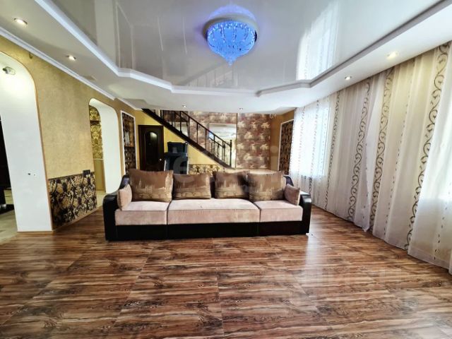 Полы: в зале, в комнатах на 2-ом этаже - ламинат; в остальных помещениях - кафель