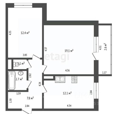 Большая гостиная - объединена с одной из спален, в результате получено просторное и светлое пространство. Все комнаты изолированы, что обеспечивает комфорт и приватность. В квартире совмещенный санузел с качественной отделкой и современной сантехникой.