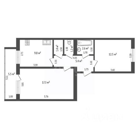 • ✓ В базе Циан 2 квартир без ремонта в микрорайоне 3-й в городе Нягань