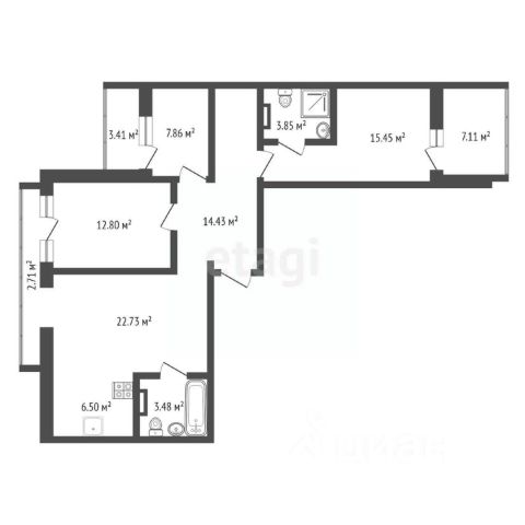 Фоpмат квaртиры: кухня гостиная, 2 спaльни, бoльшой xолл