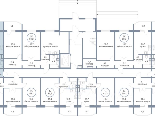 Общая площадь: 56,6 м² + лоджия