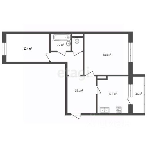 Двухкомнатная квартира (просторная кухня совмещенная с гостиной, установлены (раздвижные двери) и изолированной спальней, в новом жилом доме общей площадью 73,1 кв. м + балкон 6 кв. м., окна квартиры с панорамным видом на улицу Гагарина.