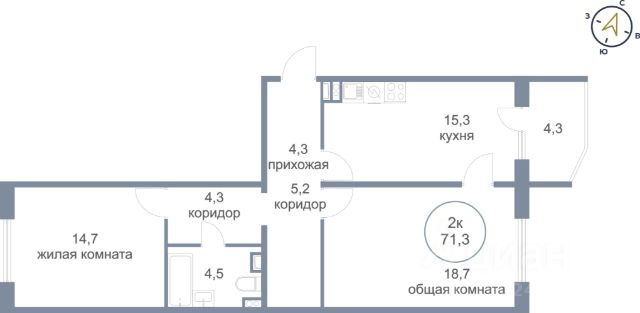 2-хкомнатная квартира.
