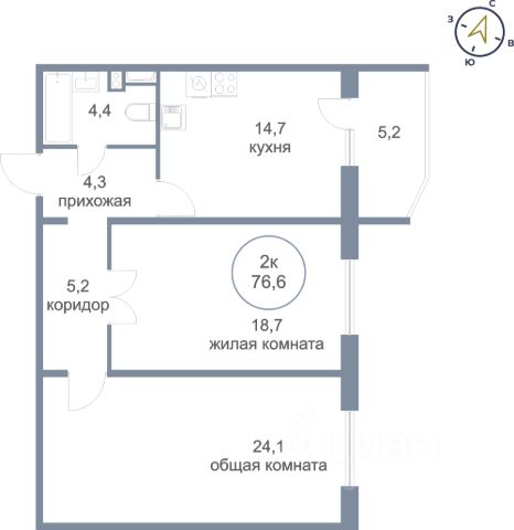 Окна всех комнат выходят на солнечную сторону.