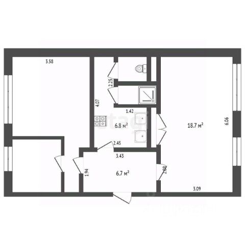 В санузле также декоративная штукатурка, но другая. Она водоустойчивая. Вся сантехника новая.