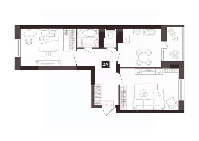 Квартира с кухней-гостиной и одной спальней в квартале "Новин". Особенности планировки: балкон, предчистовая отделка.