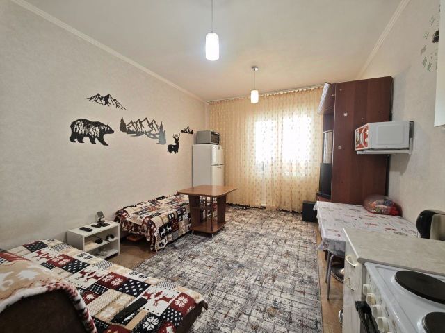 Площадь квартиры 23,5 м.кв. + 4 м. кв. теплая лоджия. Лоджия застеклена, утеплена, отделка выполнена из ламината и обустроена под зону отдыха. Ремонт произведён в сентябре 2025 г. и произведена замена пластиковых окон.