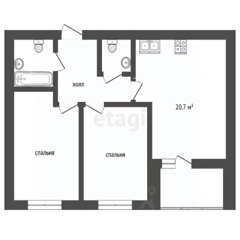 Двухкомнатная квартира просторная гостиная-прихожая с изолированной спальней и кухней, многоквартирном жилом доме, общей площадью 55,8 кв. м + балкон 8,3 кв. м., окна квартиры с видом на улицу Гагарина.