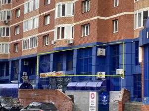 Четыре входа: два служебных, два для посетителей. Торговые помещения расположены на две стороны жилого дома. На данный момент помещение сдано...