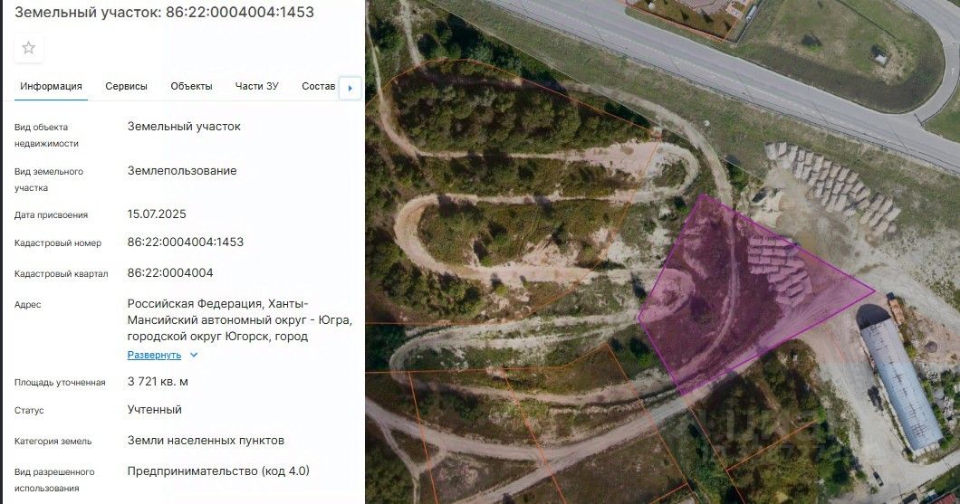Право на заключение договора аренды земельного участка для осуществления инвестиционного проекта, включенного в Перечень муниципального имущества города Югорска, предназначенного для предоставления во владение и (или) в пользование субъектам малого и среднего предпринимательства и организациям, образующим инфраструктуру поддержки субъектов малого и среднего предпринимательства, государственная собственность на который не разграничена, с кадастровым номером 86:22:0004004:1453 площадью 3 721 (три тысячи семьсот двадцать один) кв. метра, расположенного по адресу: Российская Федерация, Ханты-Мансийский автономный округ - Югра, городской округ Югорск, город Югорск, улица Железнодорожная, 71б, с видом разрешенного использования: предпринимательство (4.0), в границах, внесенных в сведения ЕГРН.