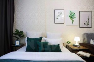 В светлой комнате царит душевная атмосфера домашнего тепла и уюта. Двуспальная кровать с ортопедическим матрасом и плотные портьеры способствуют качественному сну. Удобный диван при необходимости легко трансформируется в полноценное двуспальное место. Светильники на прикроватных тумбах обеспечат приятное чтение перед сном. Для досуга предусмотрен ЖК-телевизор на стене, Wi-Fi и журнальный стол. Комод предназначен для размещения вещей.