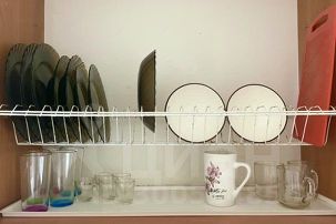 Укомплектованная техникой и посудой кухонная зона