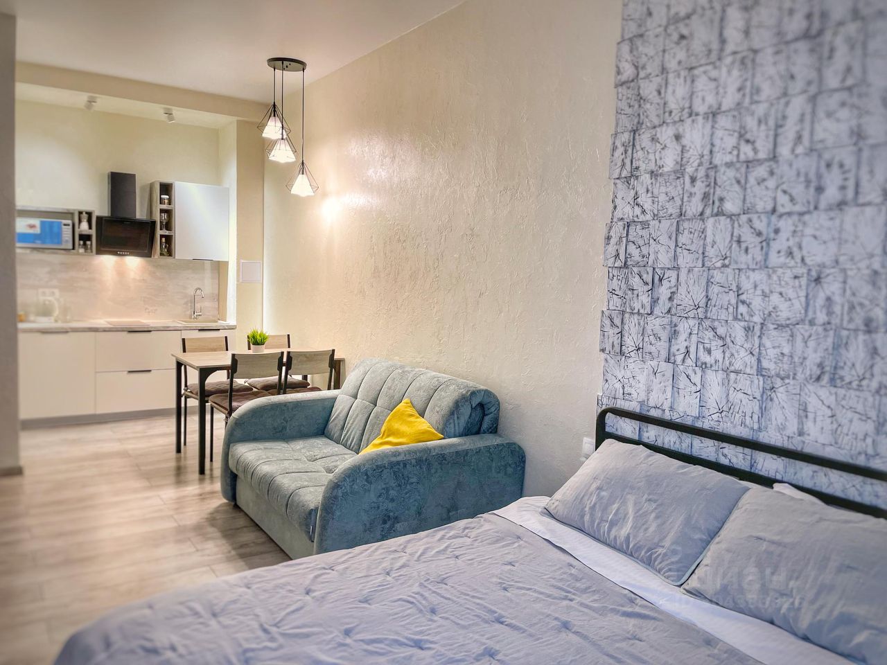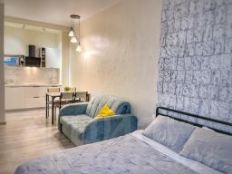 Уютная студия в стиле лофт, где создана идеальная атмосфера для отдыха и полного релакса. Квартира оснащена всем необходимым для комфортного отдыха : мини-кухня с необходимой бытовой техникой , кровать, диван, ванная комната, постельное белье, полотенца.