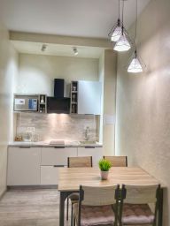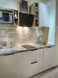 Апартаменты оснащены всем необходимым для комфортного отдыха : мини-кухня с необходимой бытовой техникой и посудой, в ванной комнате белоснежные полотенца, а также необходимые гель для душа и шампунь для волос, фен.