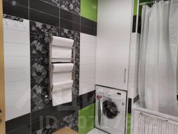 В квартире имеются две уютные спальни, гостиная и просторная кухня. Два утепленных балкона с видом на ландшафт. В спальне установлена большая кровать, а в гостиной диван.