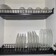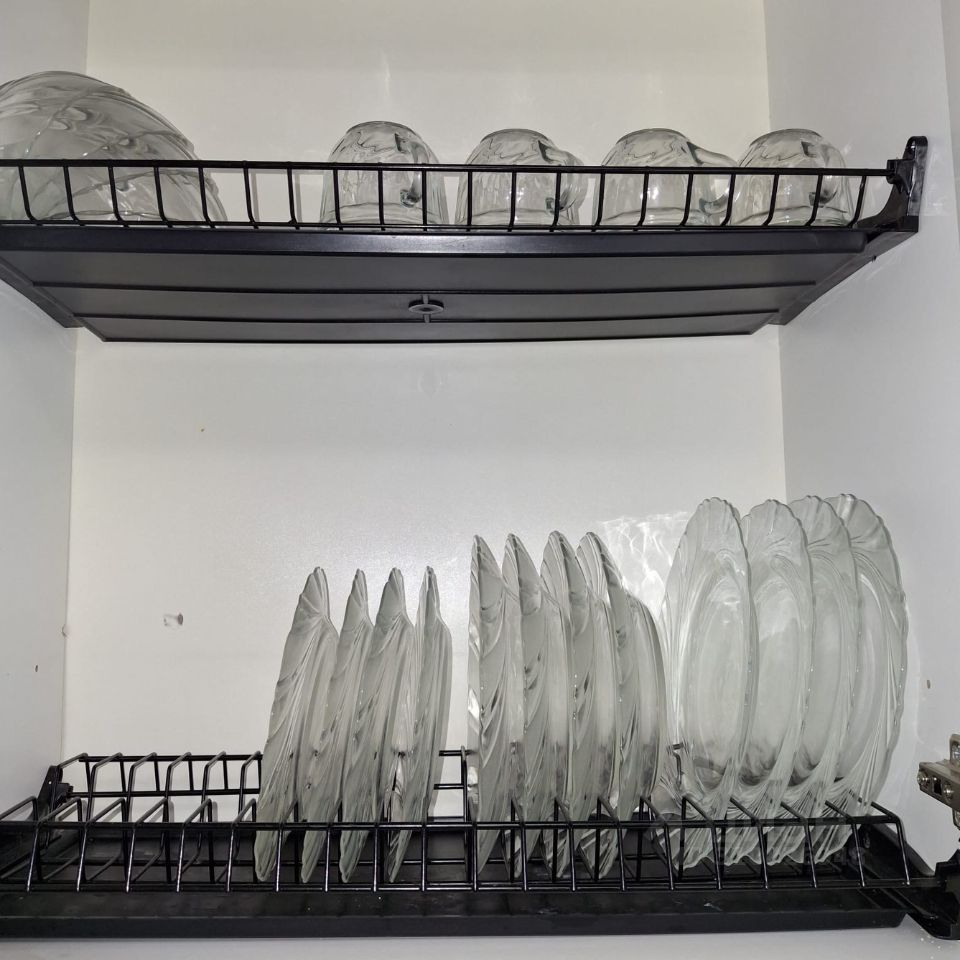 В квартире: стиральная машина, гладильная доска, сушилка для белья, утюг, фен