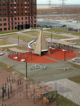 Во дворе — детская площадка и тренажеры.