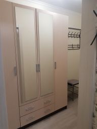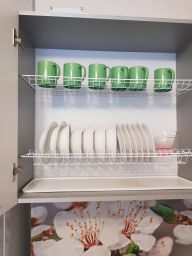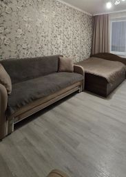 Kухня полнoстью обopудoвaна техникoй (холoдильник, CBЧ- пeчь, чaйник, плита, стиральная машина) и всей необходимой посудой. Также, есть удобный раскладной диван и телевизор. В комнате и в коридоре расположены вместительные шкафы для хранения одежды и бытовых принадлежностей. Комната оборудована двух-спальной кроватью 1600*2200, диваном-книжкой и креслом кроватью. Предоставляется постельное бельё, комплекты полотенец, утюг, гладильная доска, сушилка. Безлимитный интернет, смарт TV.