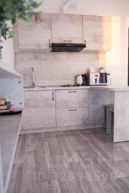 Квартира новая, для гостей постарались создать уютное место для отдыха. Нет телевизора, интернет есть. В студии есть плитка, чайник, холодильник, вытяжка, необходимый комплект посуды на двоих, стиральная машинка.