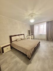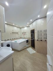 Потолки 2,7 м. Три большие спальни (19,4 18, 1 14,2 кв.м.), большой зал-гостиная (19,4 кв.м.). Два санузла. Один совмещён с ванной комнатой (10,9 кв.м) с двухместным джакузи и сауной. Во второй ванной комнате душевая кабина с функцией "финская сауна".