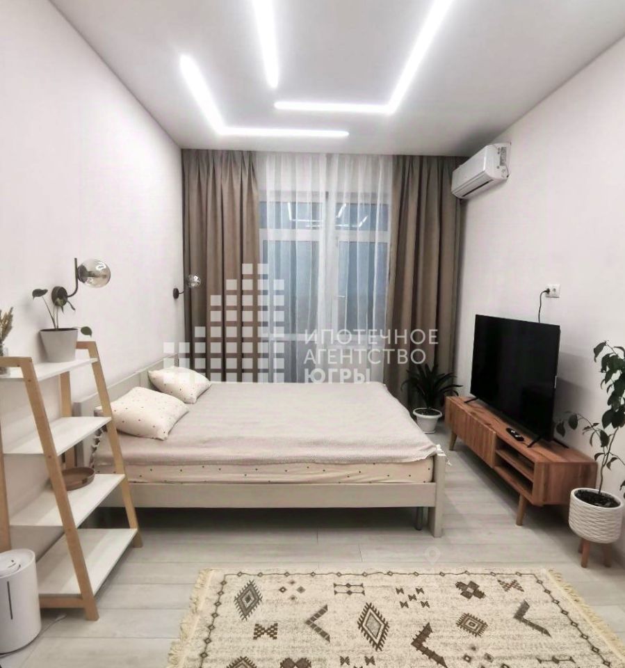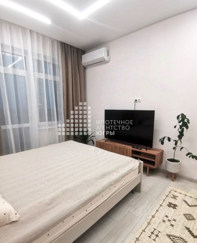 Имеется все необходимое: двуспальная кровать 160*200, одноместный диван-кровать (размер сп. места 70*150), кондиционер, две гардеробные комнаты.
